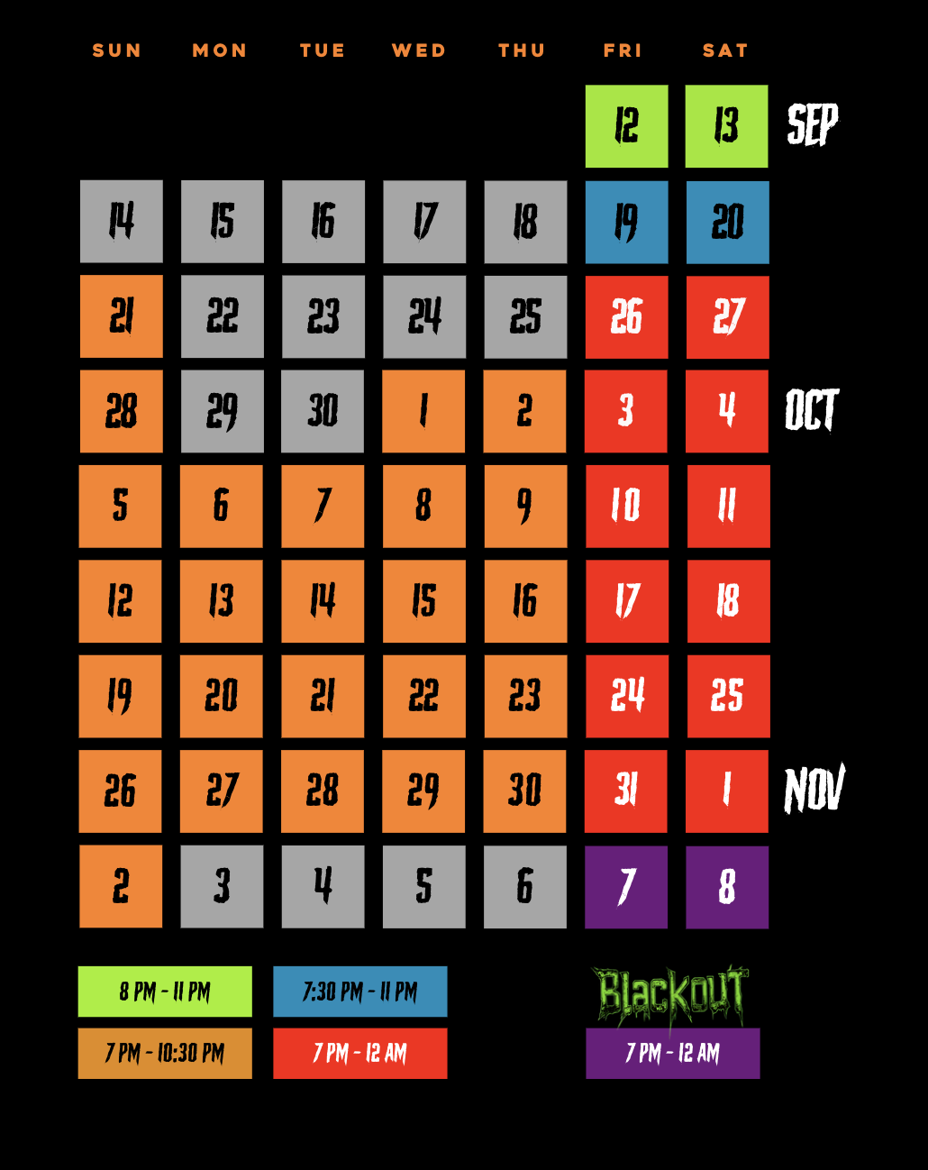 Experience Hanna Haunted Acres in it's scariest form - complete darkness. This Blackout haunted event is not for the faint of heart! Can you survive your worst nightmares in utter darkness?